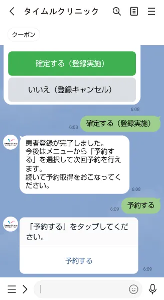 ①予約するをタップすると、患者登録を求められます。