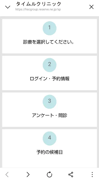 ⑤WEB問診と予約日を選択して予約を行ないます。